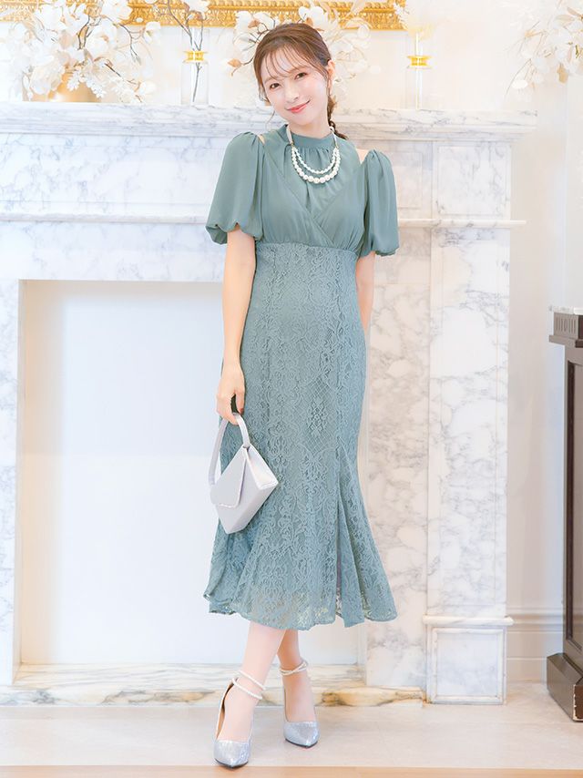 袖ありワンピースパーティードレス