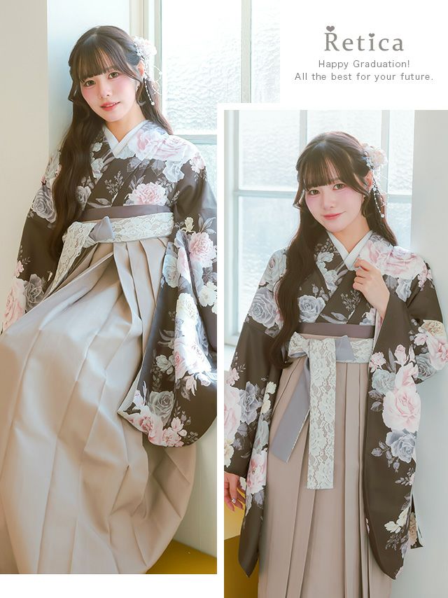 薔薇柄が目を引く袴セット