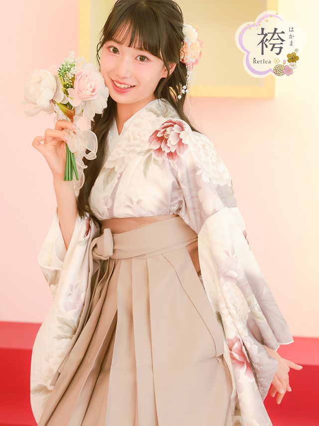 ベージュカラーの袴を合わせた