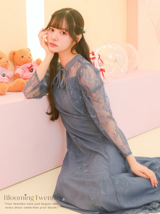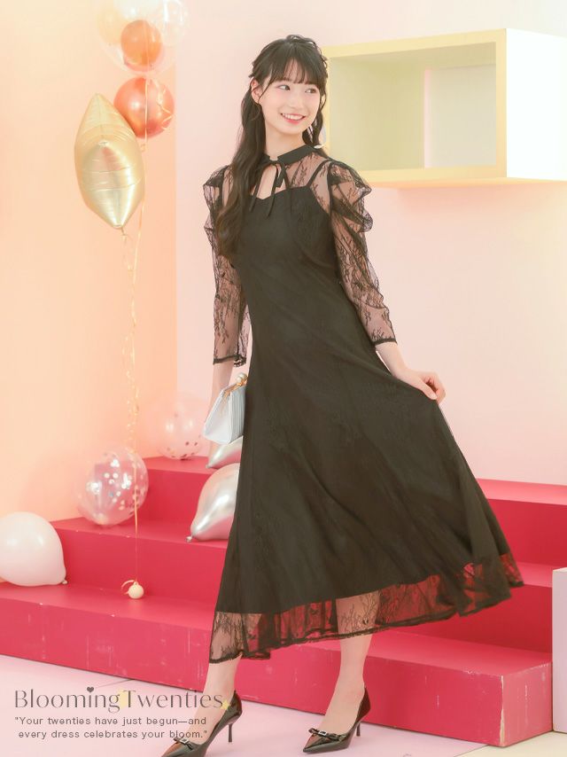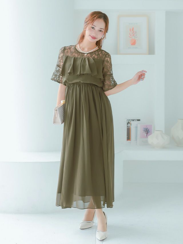 総レースロング丈ワンピースドレス