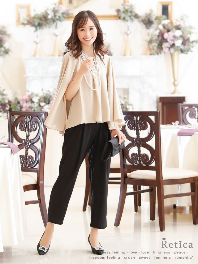 ケープ風フレアトップス×パンツ