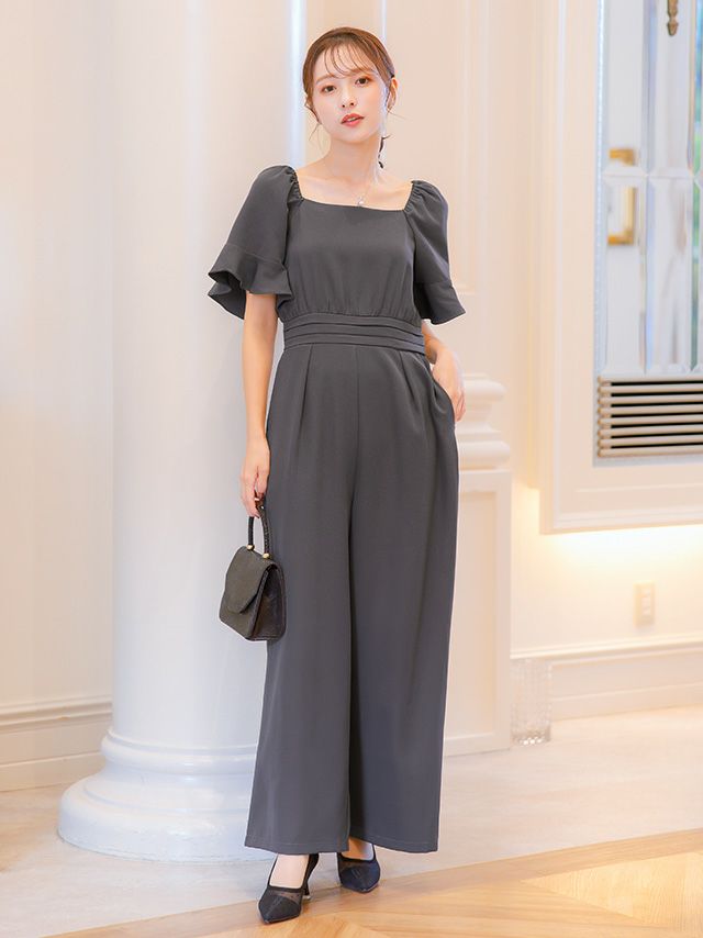 半袖ベルスリーブウエストマークワイドパンツドレス