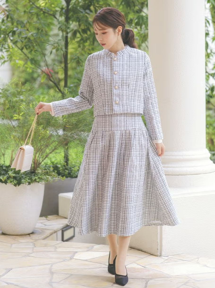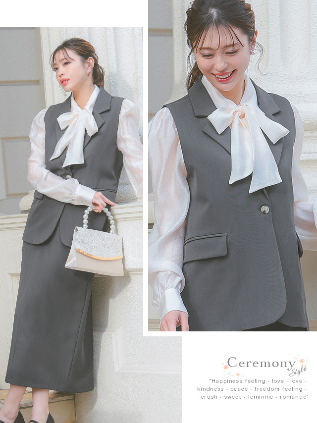 ミドル丈ベスト+フレア膝丈スカートセットアップセレモニースーツ