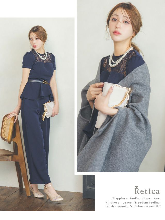 ペプラムデザイン×ゴールドのベルトがアクセントになり