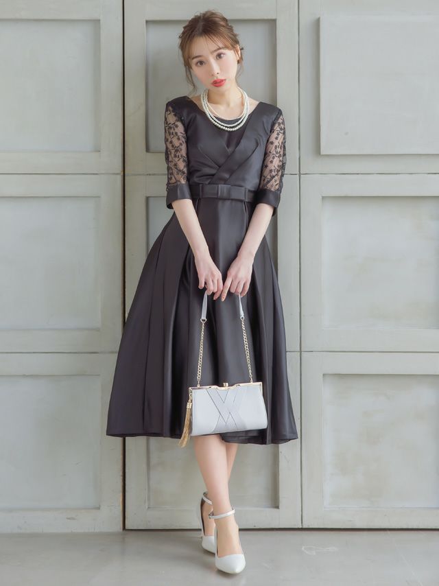 サテン生地の艶感が上品なひざ下丈ドレス✨
