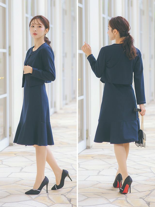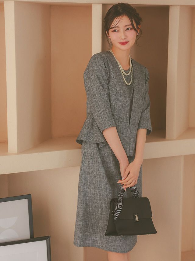 ジャケットとワンピースどちらにもペプラムがついているので