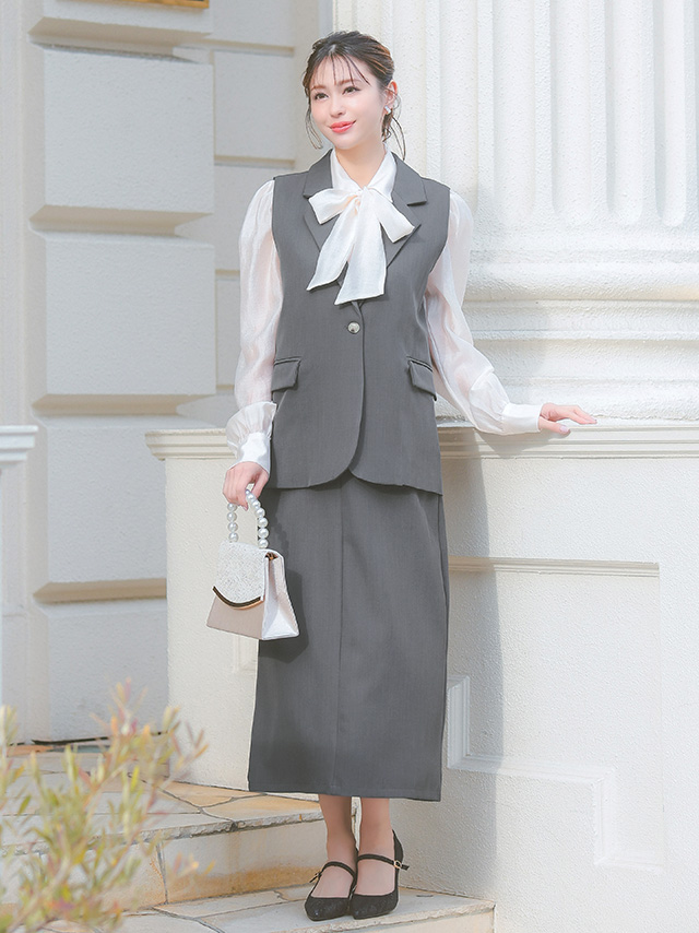 ミドル丈ベスト+フレア膝丈スカート