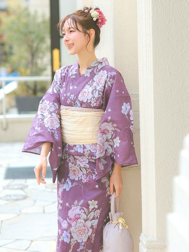 ラベンダーカラーの帯が柔らかな印象をプラスし、