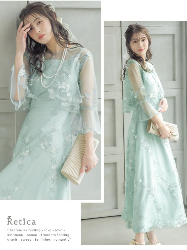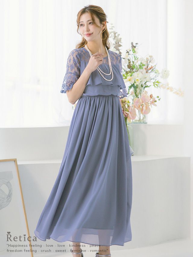 レース切替ボレロ風ミモレ丈ワンピースパーティードレス