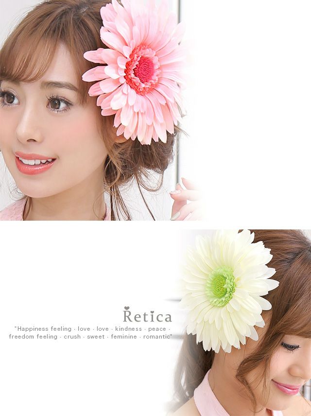 可憐なヘアアクセ♪ [SALE] フラワー髪飾りふんわり華やぐガーベラコサージュ (ホワイト/ピンク/オレンジ) [Retica/レティカ]