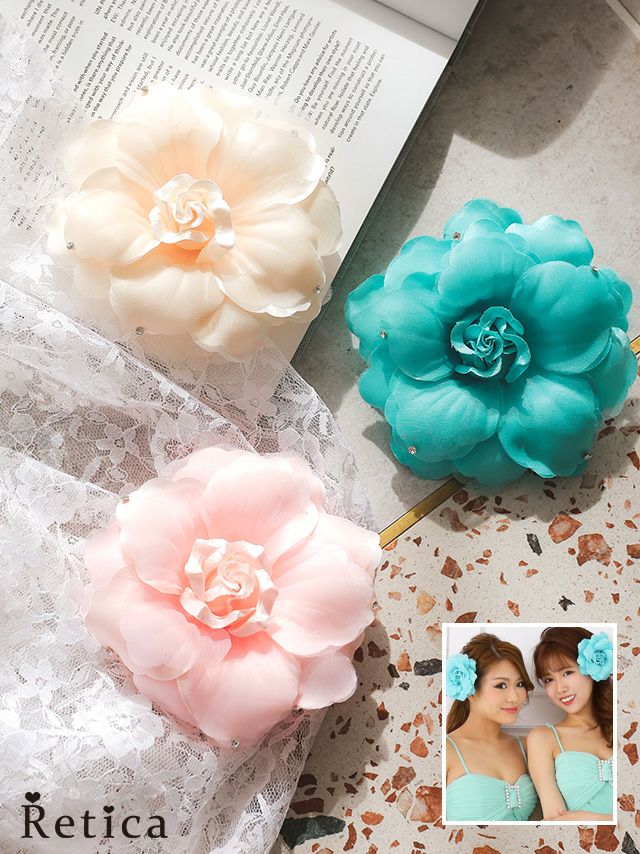 ふんわりとしたシフォン素材でフェミニン♪ [SALE] フラワーコサージュヘアクリップアクセサリー (ベージュ/ブルー/ピンク) [Retica/レティカ]