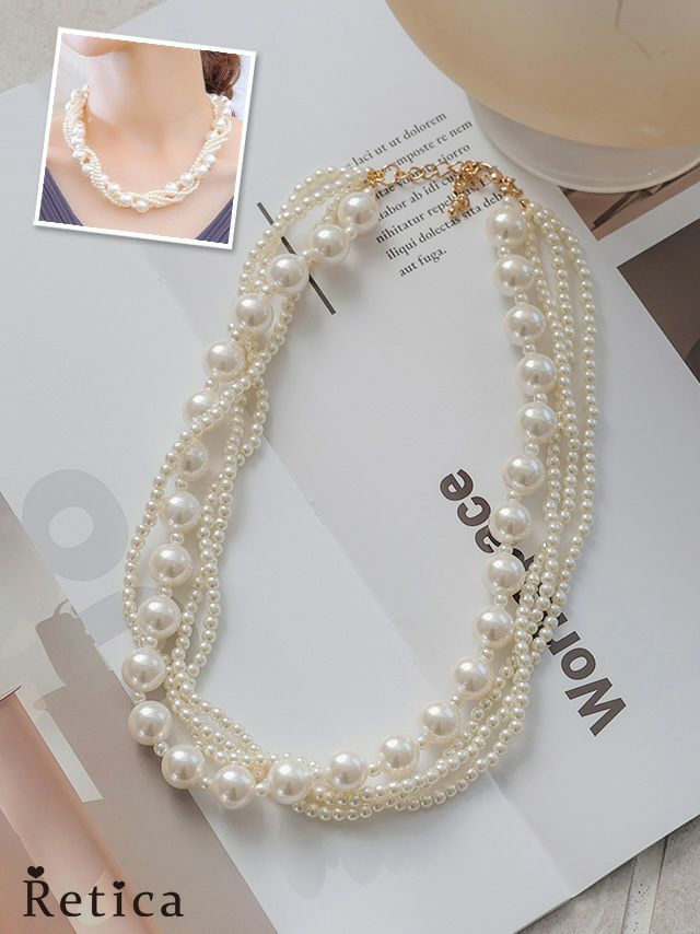 アクセサリー ネックレス パーティーアクセサリー 結婚式 Retica レティカ [SALE] 変形パールトップ2連ショートパールネックレス(ホワイト)