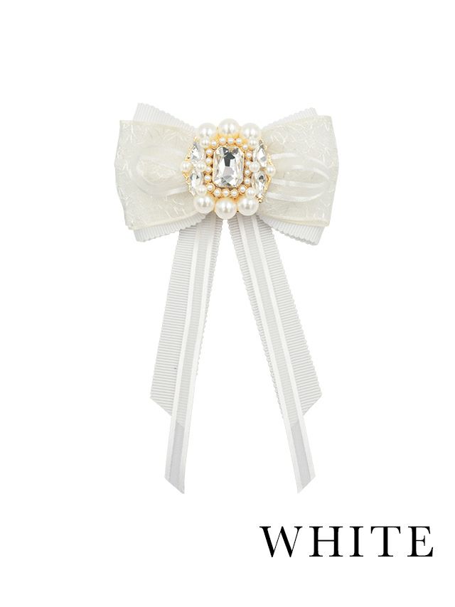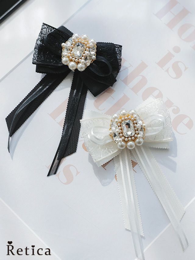 さりげなくかわいい♪ ビジュー付きミニベロアクリップリボン2個セット(オフホワイト/ピンク/ブラック)