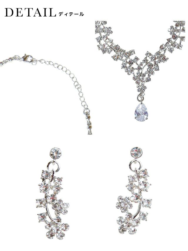 4. シンプルビジューネックレスピアスセット(シルバー)