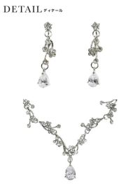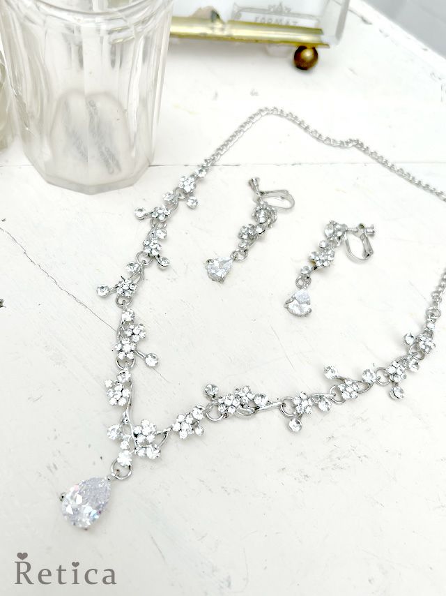 • 結婚式 お呼ばれ アクセサリー フラワービジューラインストーンネックレスイヤリングセット