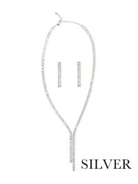 縦長フォルムで顔周りをスッキリ見せる♪ シルバーアシンメトリーストーンシルバーネックレスピアスセット