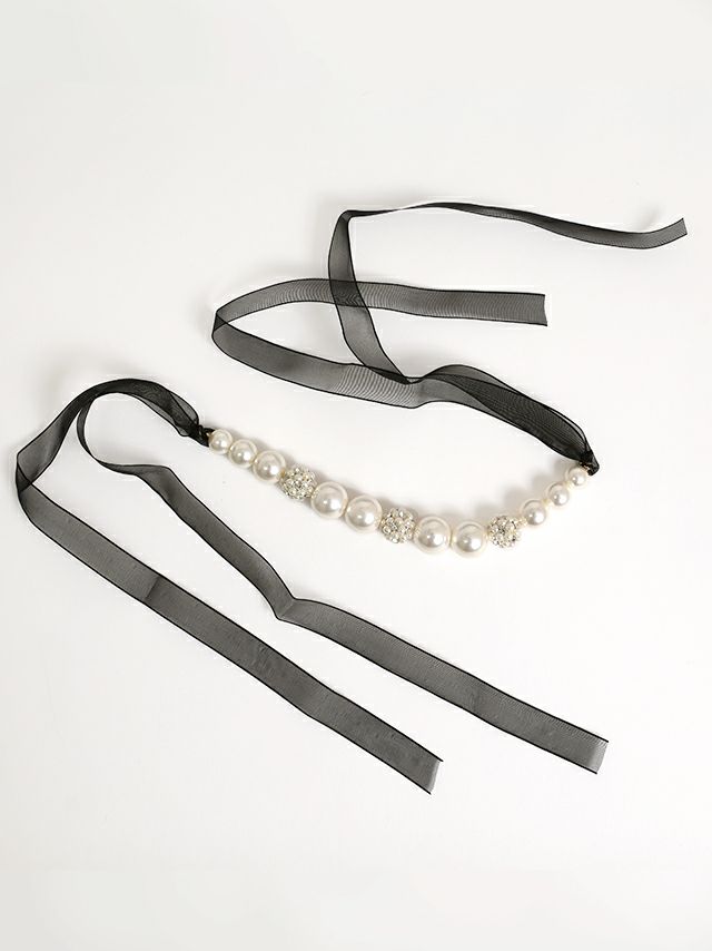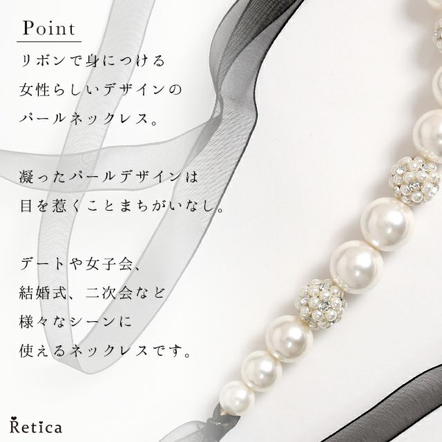 3. パール×ビジューリボンネックレス(ホワイト×ブラック)