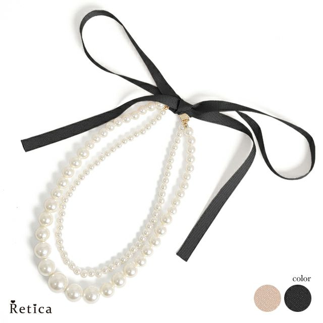 3. パール2連リボンネックレス(ホワイトパール×ベージュ/ホワイトパール×ブラック)