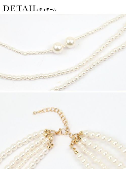 3. 大小パールミックスデザイン4連ロングパールネックレス(ホワイト)