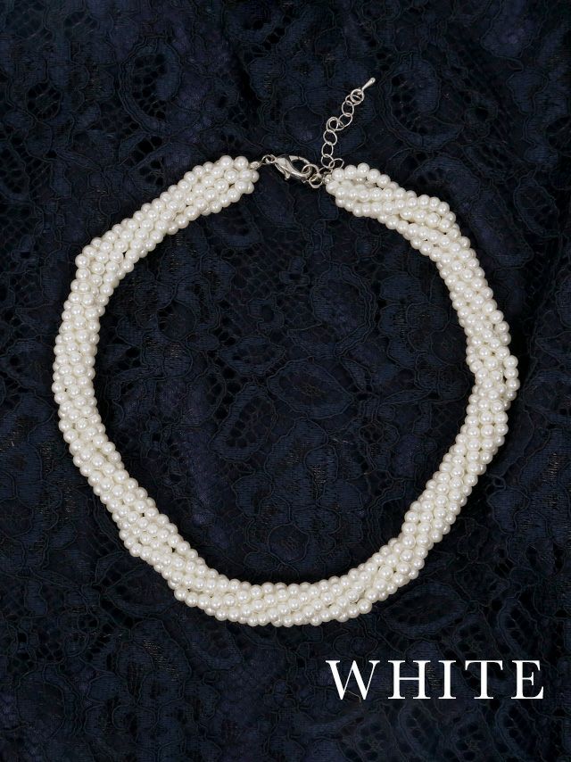 どんなドレスにも合う♪パールアクセサリー スクリューデザインパールショートネックレス (ホワイト)
