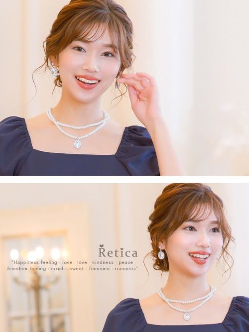 二連パール ビジューチャーム ネックレス×ピアス アクセサリー2setのメイン画像 二連パール ビジューチャーム ネックレス×ピアス アクセサリー2setのイメージ画像