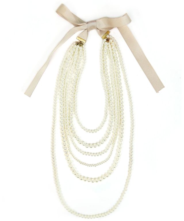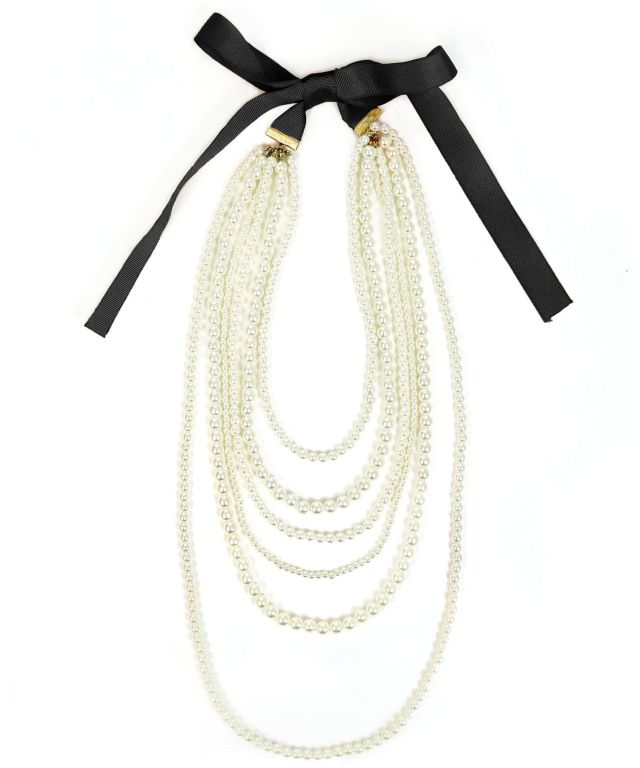 4. 6連パールリボンネックレス(ホワイトパール×ベージュ/ホワイトパール×ブラック)
