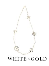 4. バラモチーフ×パールネックレス(ホワイトパール×ゴールド/ホワイトパール×シルバー)