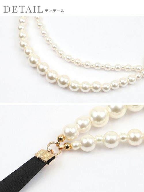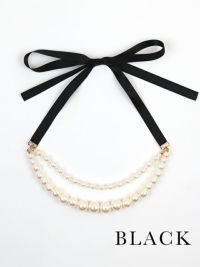 4. バックリボン×2連パールネックレス(ベージュ/ブラック)