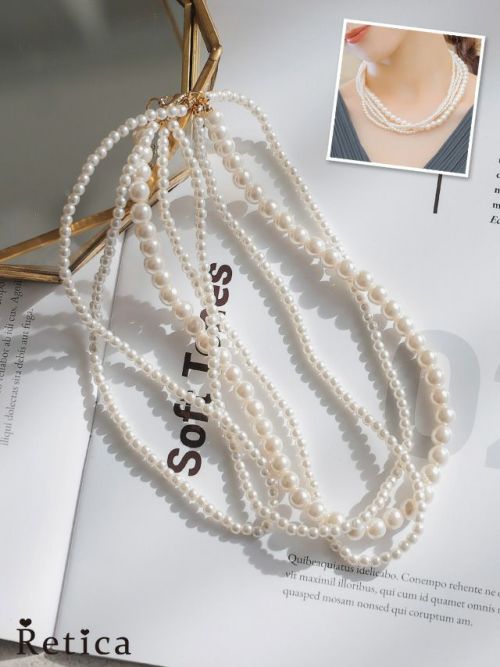 立体感のある上品なネックレス♪ 4連パールフォーマルデザインネックレス(ホワイト)