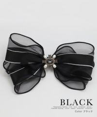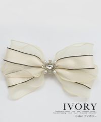 ビジュー付きバイカラーリボンバレッタ (アイボリー/ブラック)