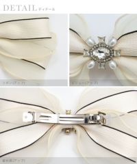 3. ビジュー付きバイカラーリボンバレッタ (アイボリー/ブラック)