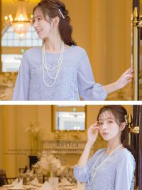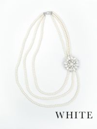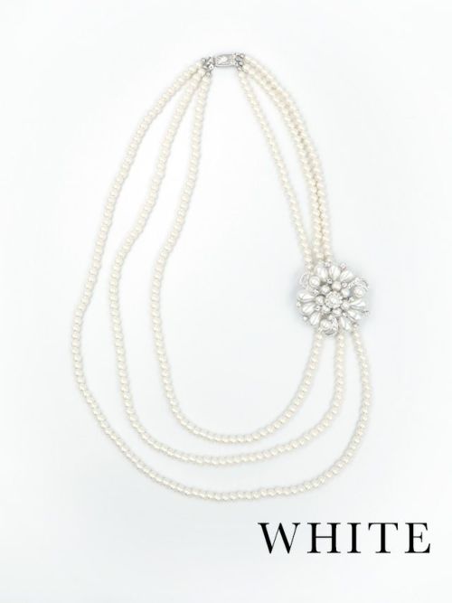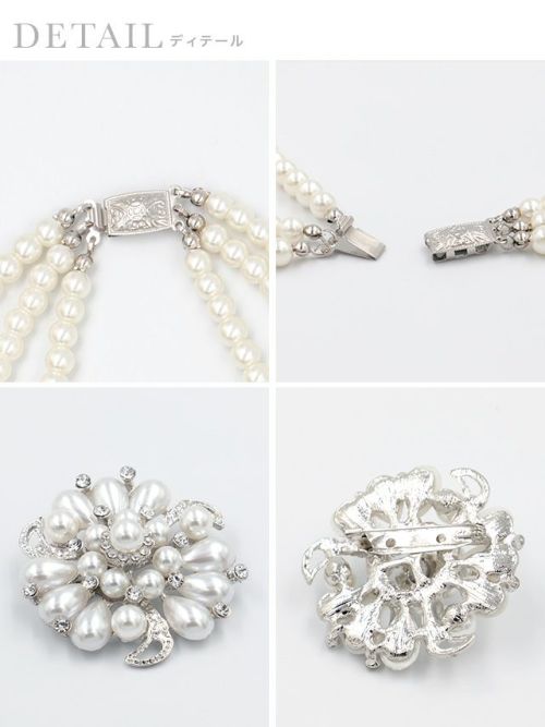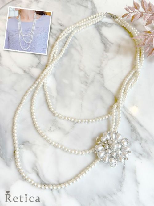 3. フラワーブローチ付き 三連パール ロングネックレス
