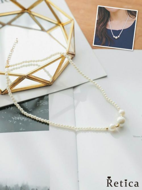 ガーリーな雰囲気に♪ アクセント3粒パールネックレス
