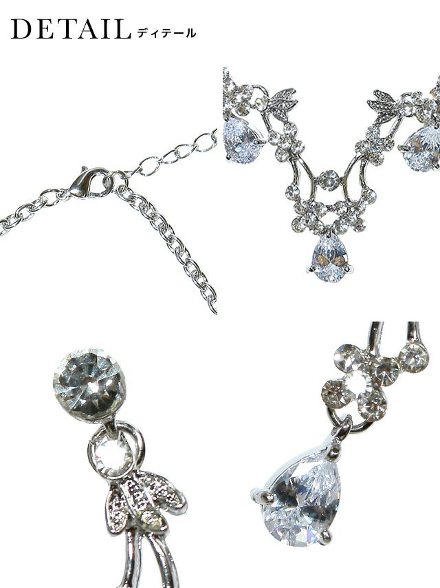 ラインストーンフラワーネックレスイヤリングセットのメイン画像 ラインストーンフラワーネックレスイヤリングセットディティール画像 ラインストーンフラワーネックレスイヤリングセットのカラー詳細