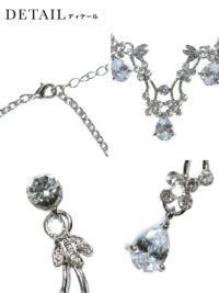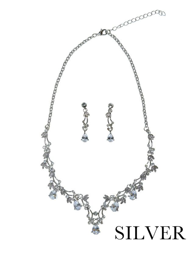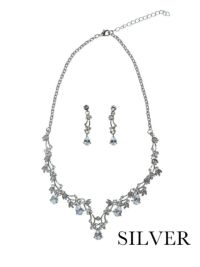 ラインストーンフラワーネックレスイヤリングセット(シルバー)