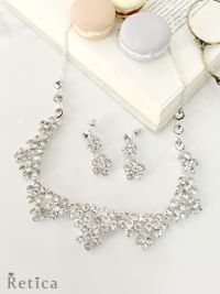 3. ゴージャスフラワーモチーフネックレスピアスセット(シルバー)