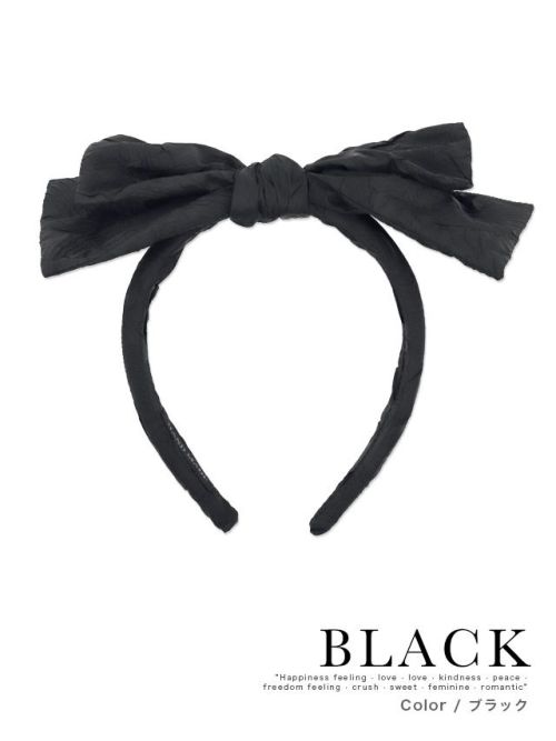 シワ加工ビッグリボンカチューシャ (ブラック)