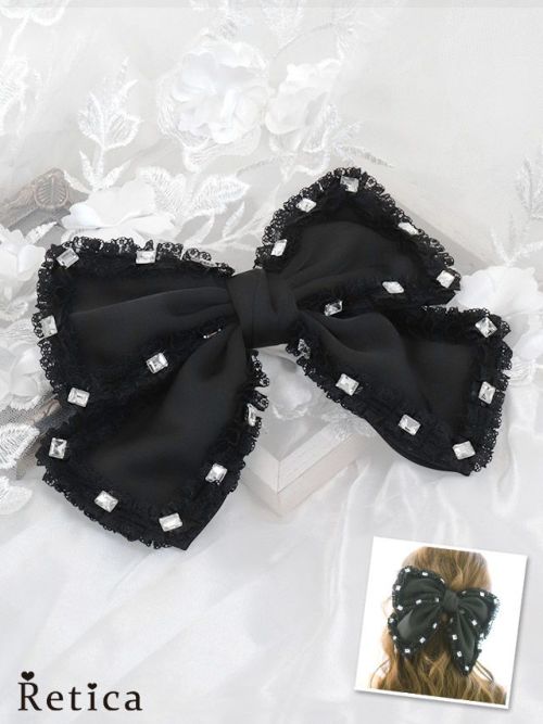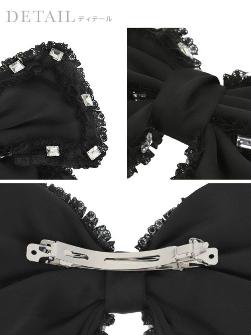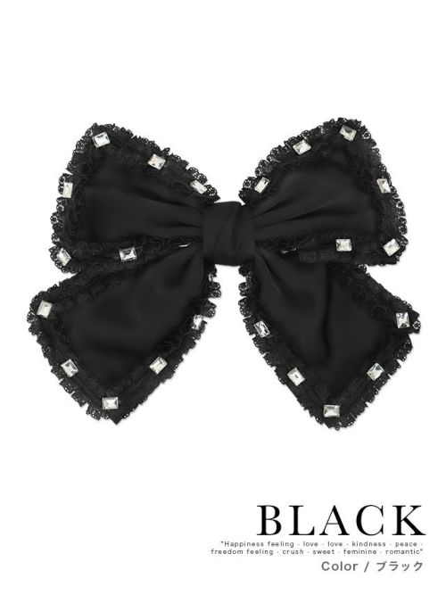 スクエアビジュ付きビッグリボンヘアアクセサリー (ブラック)