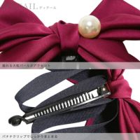 大粒パールリボンモチーフバナナクリップヘアアクセサリー(ピンク×ブラック/パープル×ネイビー/グレー×ブラック/ブラック×ブラック)