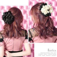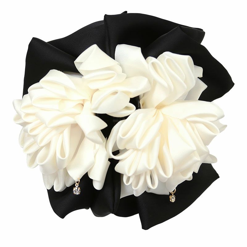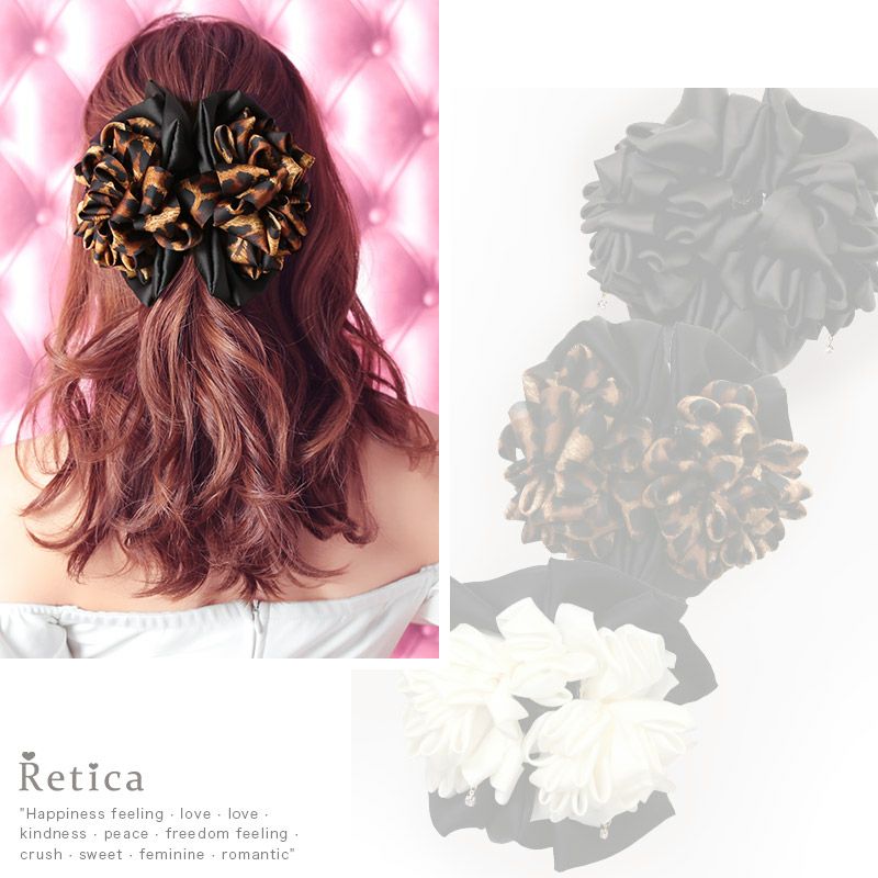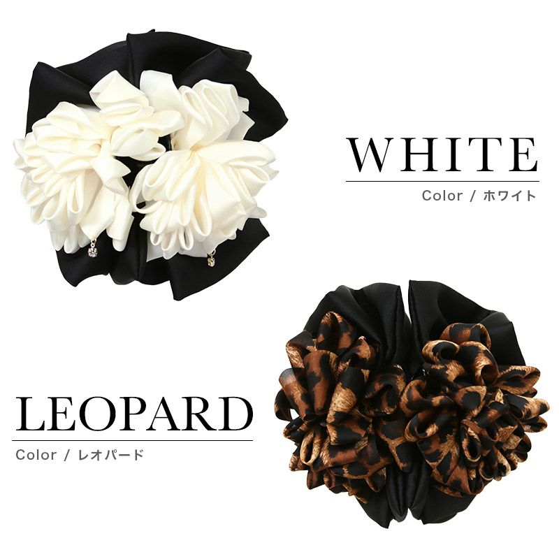 ボリュームフリルビジュー付きバンスクリップヘアアクセサリー(ホワイト/レオパード/ブラック)