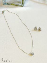 3. キラキラスクエアモチーフ ネックレス×ピアス2点set