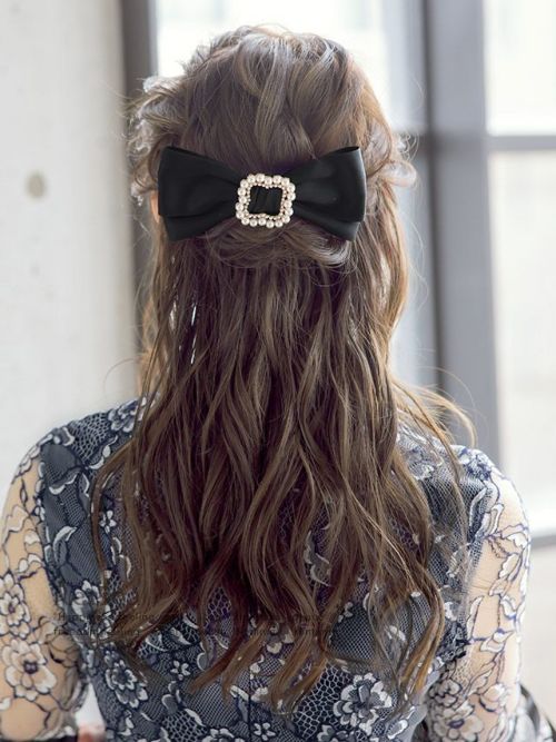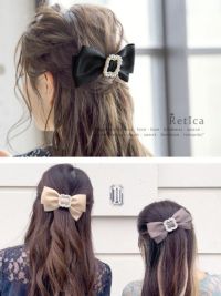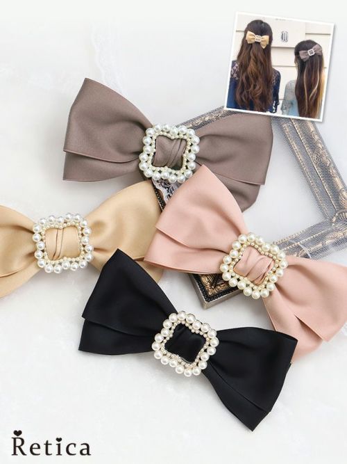 3. パールビジュー×リボンバレッタ (ベージュ/ピンク/モカ/ブラック)