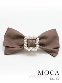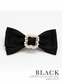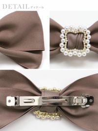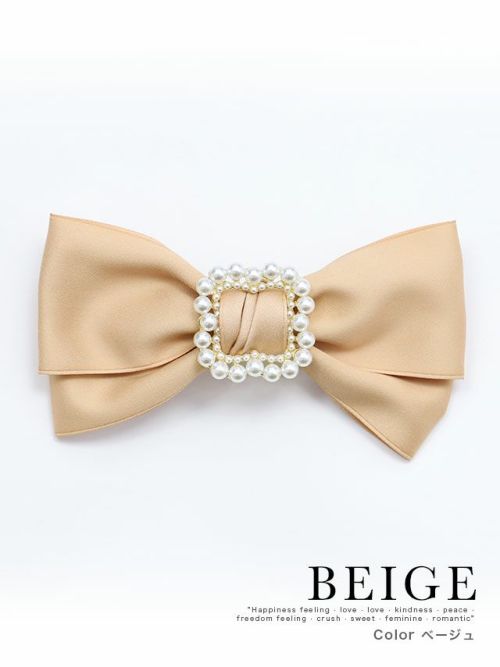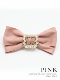 パールビジュー×リボンバレッタ (ベージュ/ピンク/モカ/ブラック)
