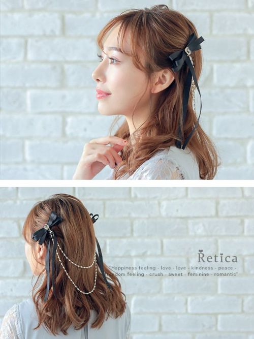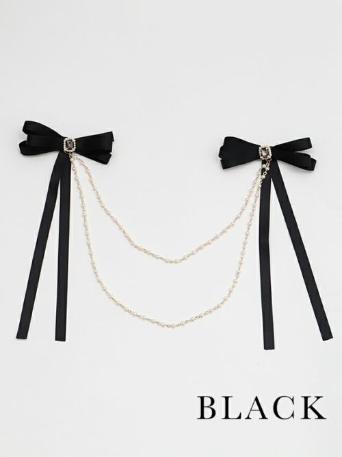 3. ビジュー付きリボンパール髪飾り (ブラック)