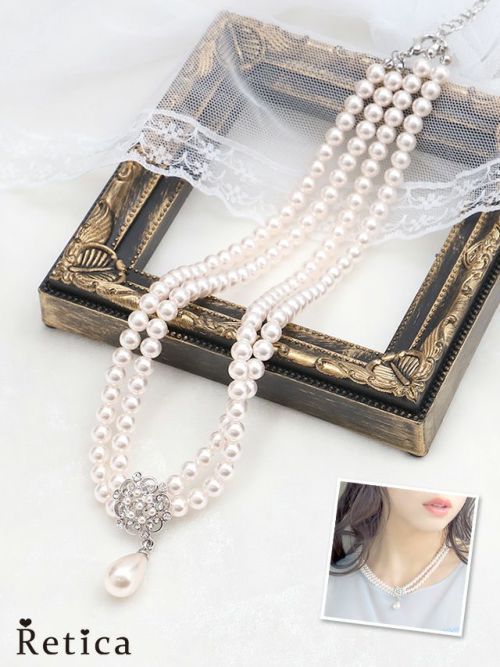 ビジューデザインパール二連ネックレスのメイン画像 ビジューデザインパール二連ネックレスのイメージ画像1 ビジューデザインパール二連ネックレスのカラー詳細1 ビジューデザインパール二連ネックレスのデティール