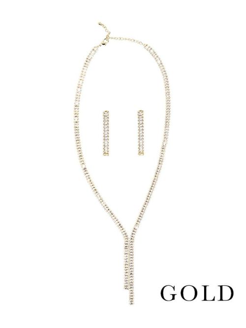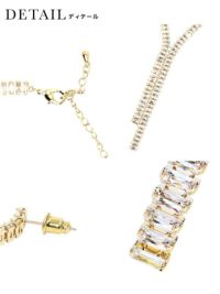 アシンメトリーでワンランク上の装いに♪ アシンメトリーデザインYラインゴールドネックレスピアスセット