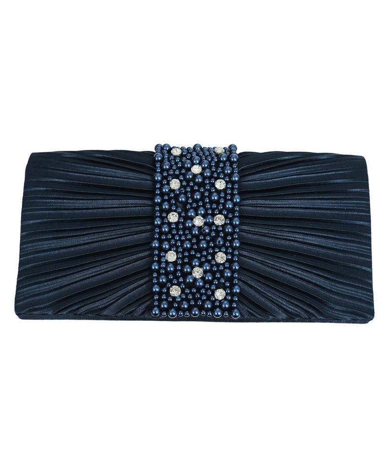 3. ビジュー×パールデザインギャザー入り2wayバッグ(アプリコット/シルバー/ネイビー/ワインレッド/ブラック)