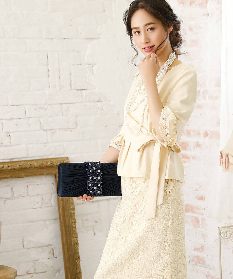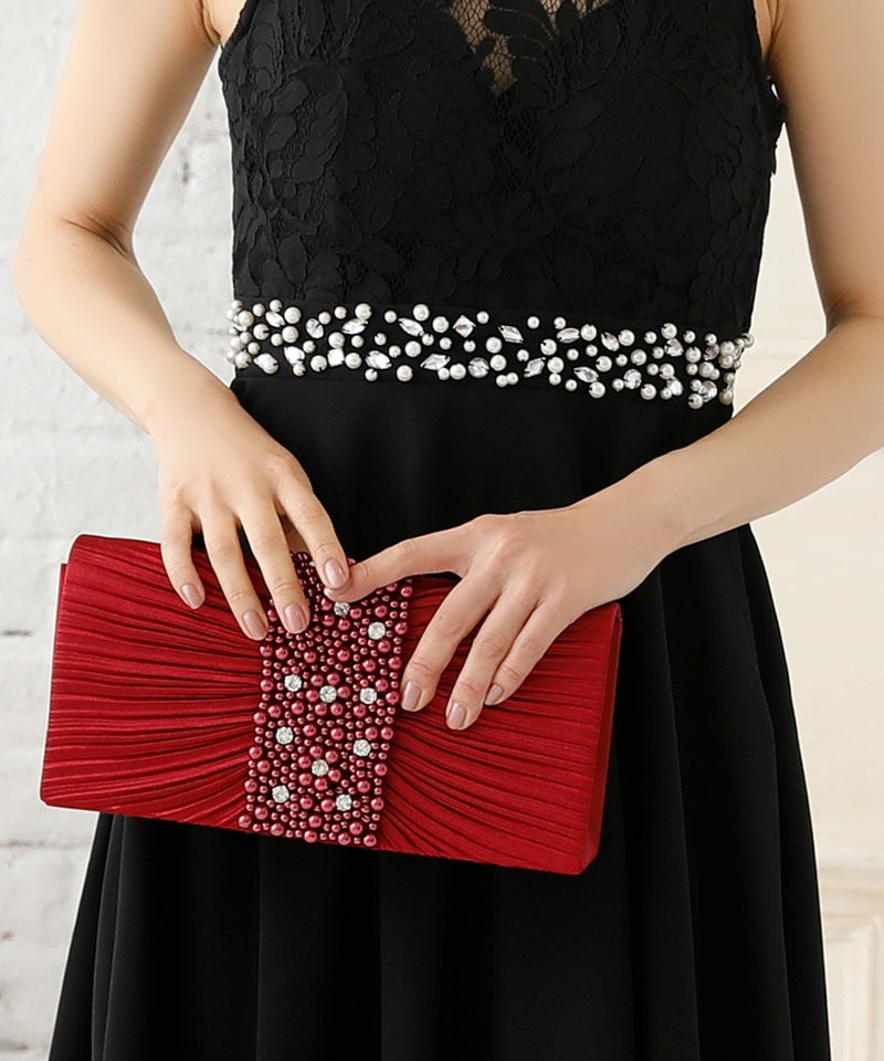 ビジュー&パールのリボンデザインバッグ