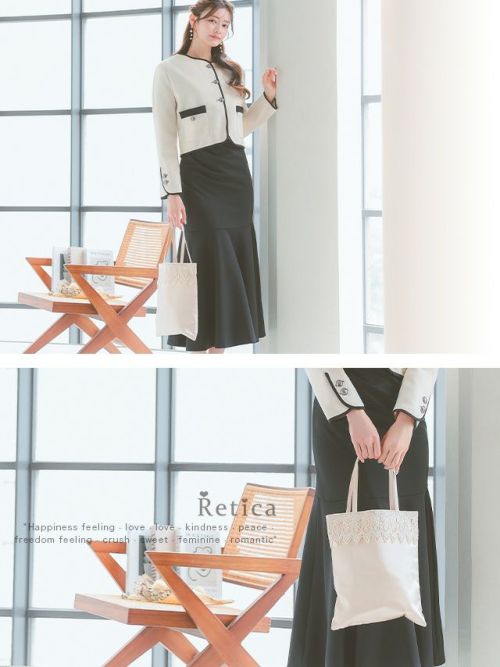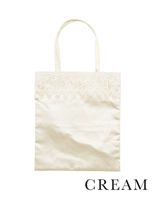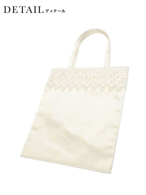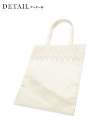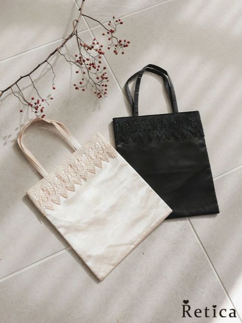 サブバッグに最適♪ 刺繍レースデザインハンドバッグ (クリーム/ブラック)
