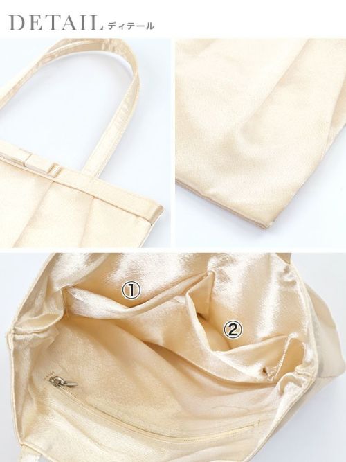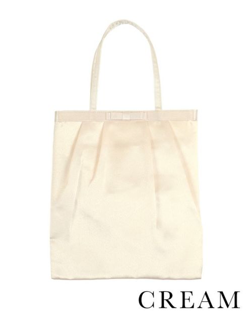 お呼ばれのサブバッグにも♪ タックデザインサテンハンドバッグ(クリーム/ブラック)